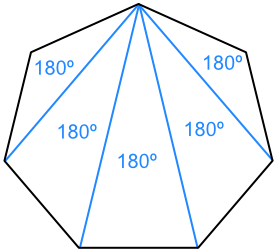 According to the angle sum property of a polygon, the sum of all the interior angles of a polygon is equal to (n − 2) × 180∘, where n is the number of sides of the polygon.