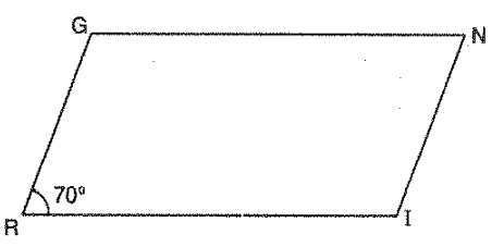 Hence the angles of a parallelogram are ∠R = ∠N = 70° and ∠I = ∠G = 110°.