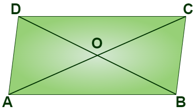 The diagonals of a parallelogram bisect each other at the point of intersection. In the parallelogram ABCD given below, OA = OC and OB = OD.